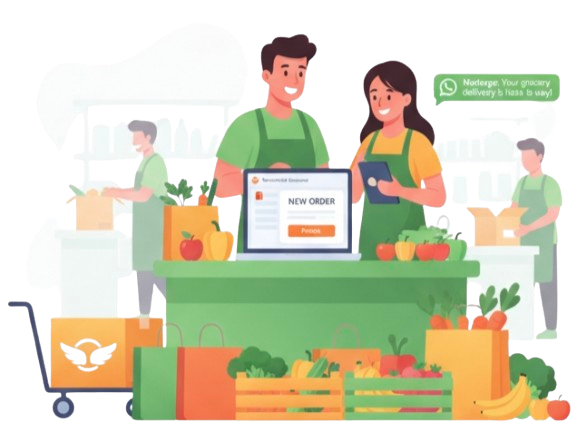 Your grocery or food delivery business — fully connected on WhatsApp.